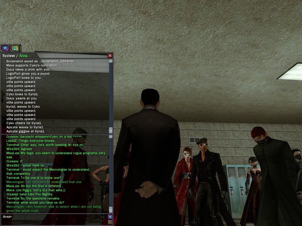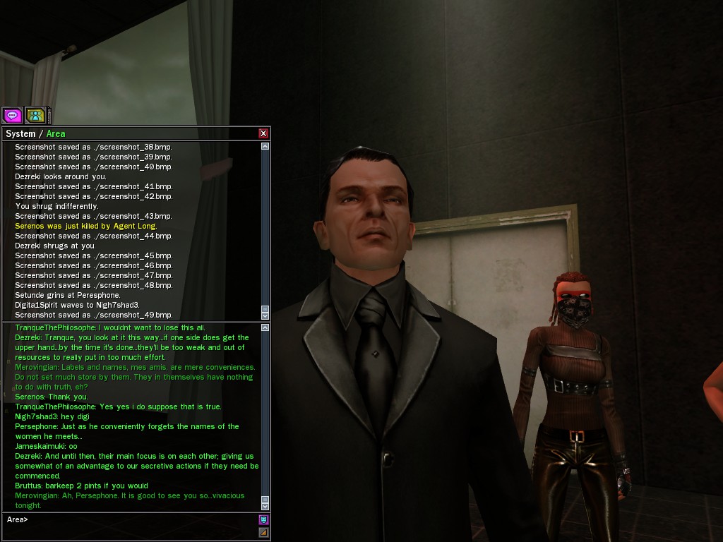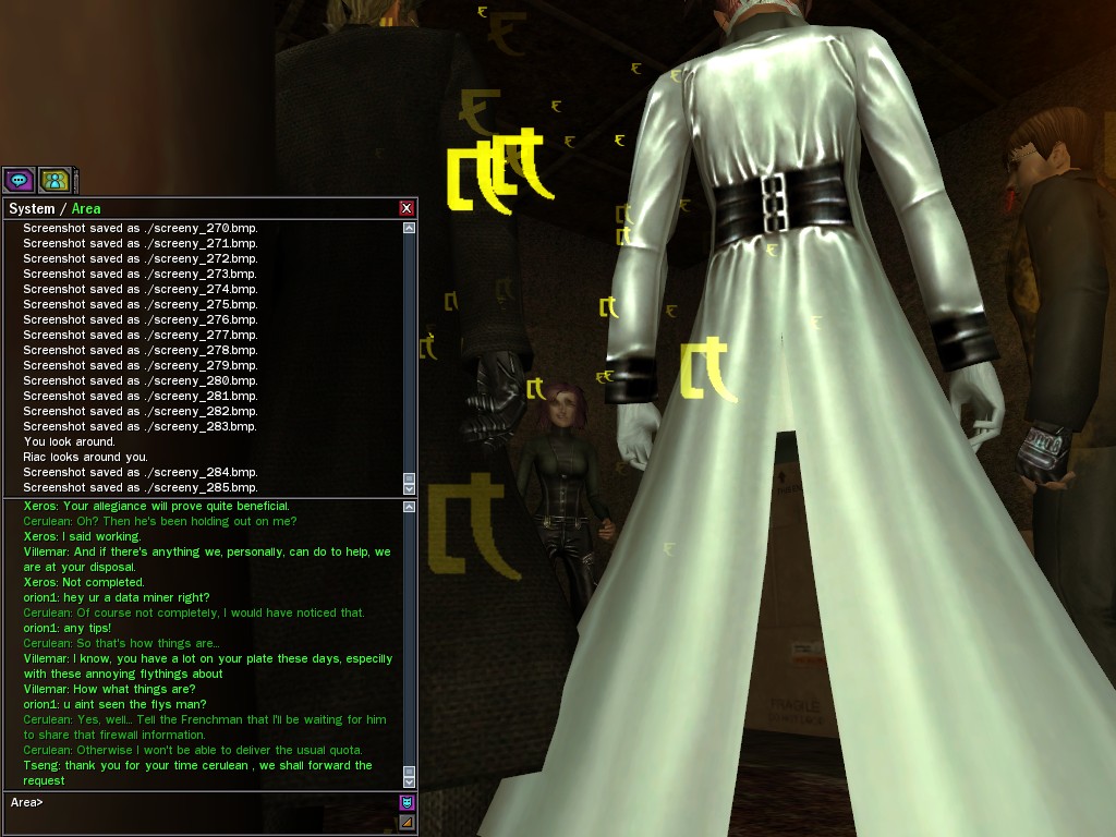 So, we find a plot in the guise of chaos surrounding the stolen program. Seraph claimed to know only the beginning, but the disturbance and disruption that facilitated his escape would seem to put the lie to his ignorance, n'est-ce pas? It will amuse me to strip away the rest of the facade.