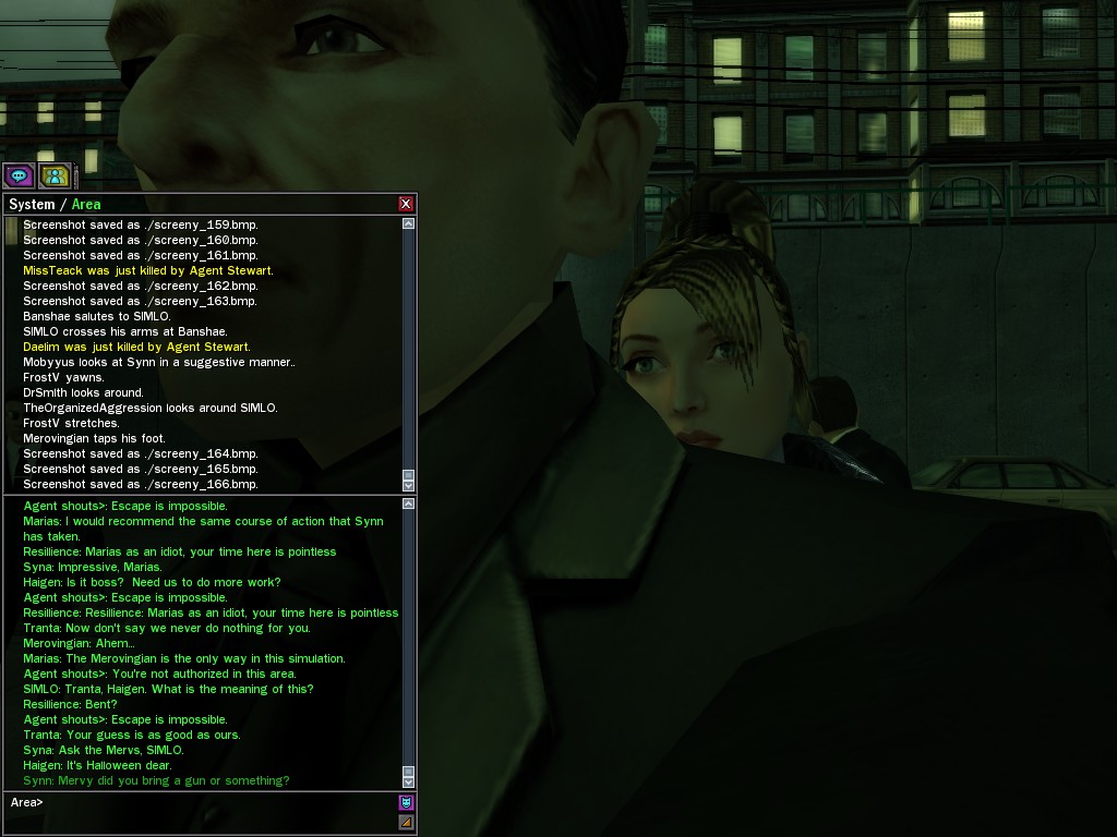 It is most unfortunate that the enemy learned of the Apothecary's attempt to leave the Matrix; yes, quite a shame. I understand her commando escort was wiped out to a man, and she, herself, chased through the decaying streets, to be gunned down in some dark alley.
