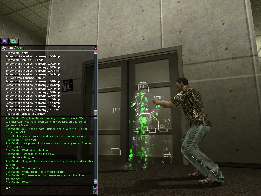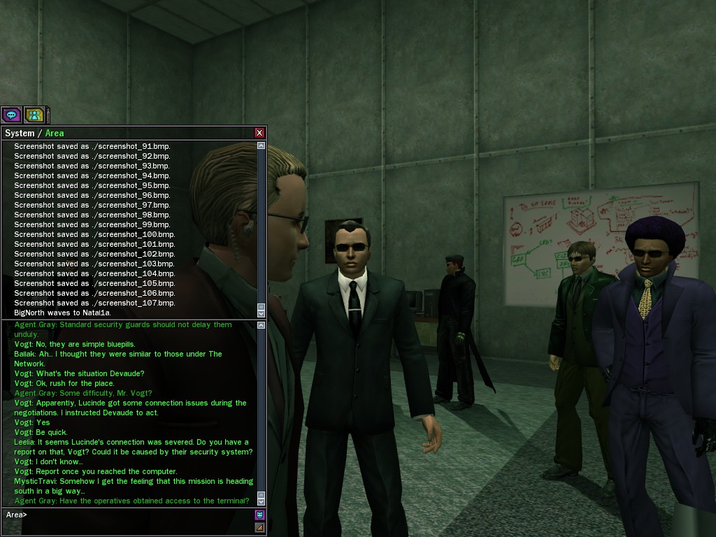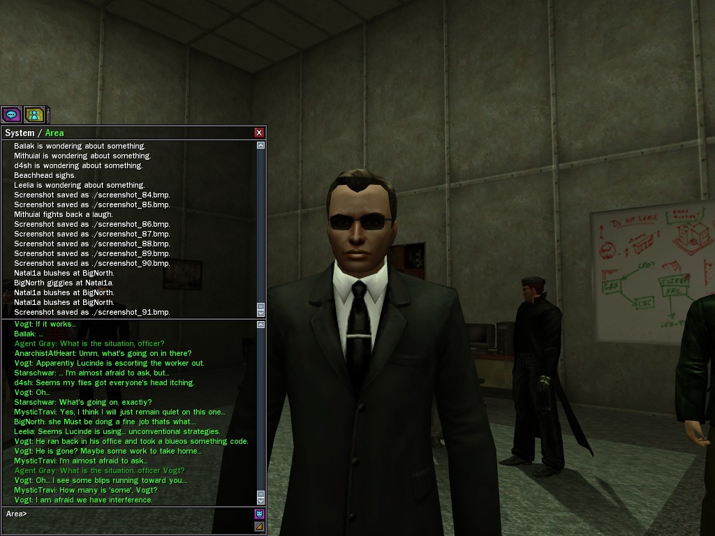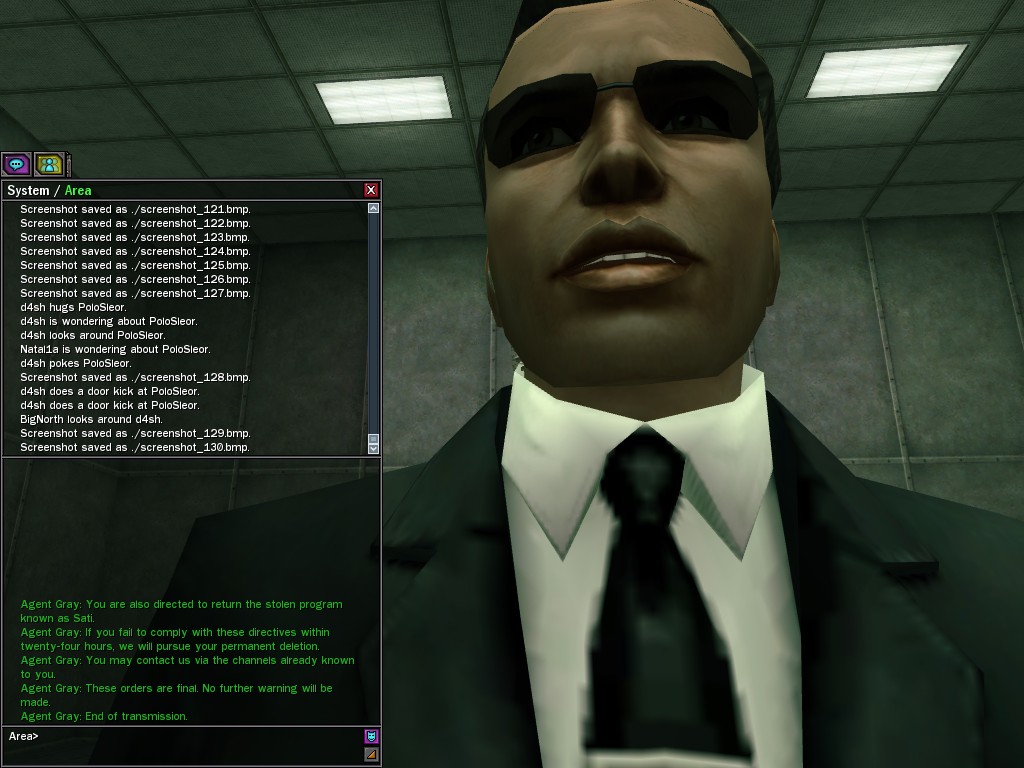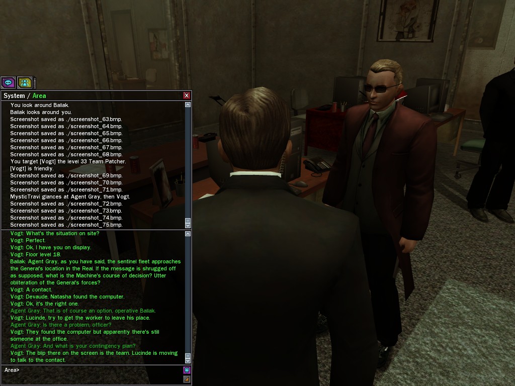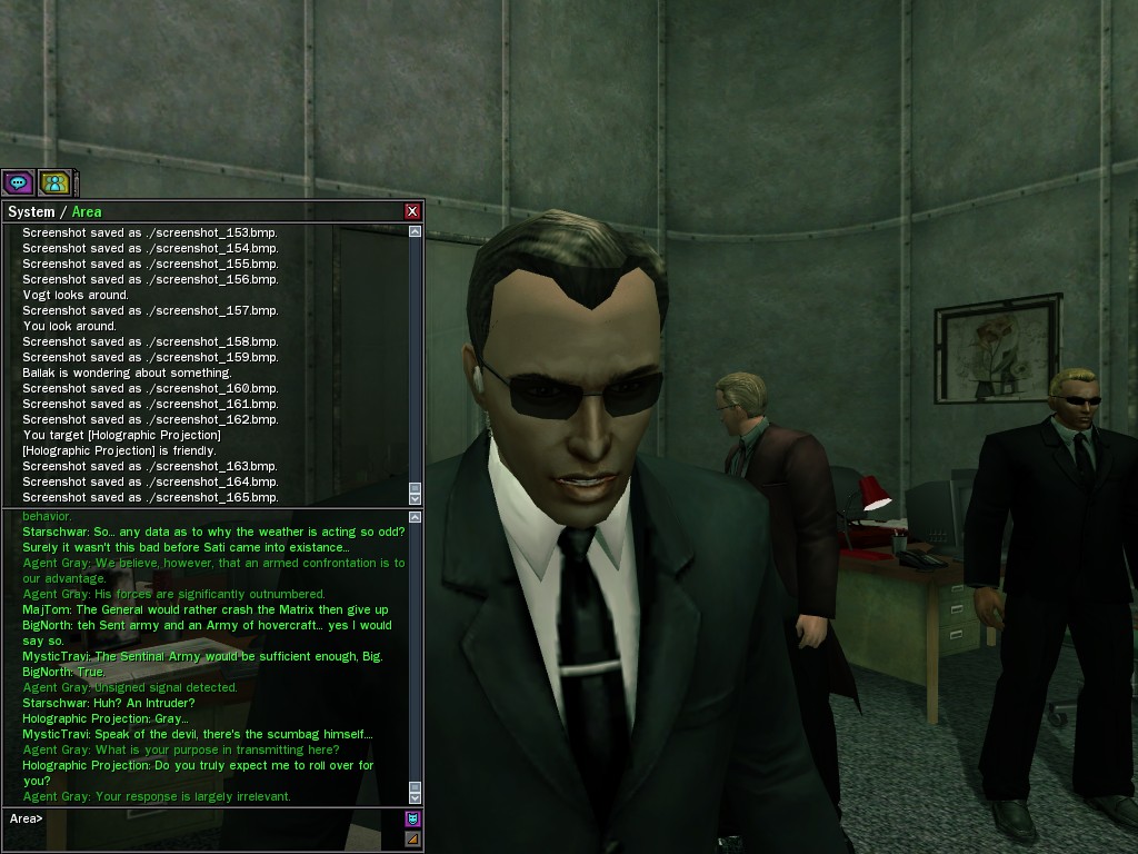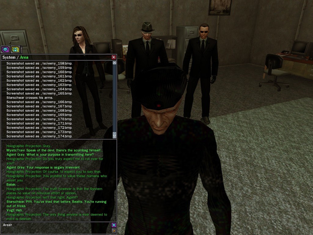 Under questioning from operatives, the ZAITSO program revealed intelligence, if of a somewhat questionable nature. It is possible that the program may become more coherent once it has been repaired from the stress of the unexpectedly lengthy battle against Merovingian and Pluribus Neo operatives in Tabor Park. Efficiently, Agent Gray