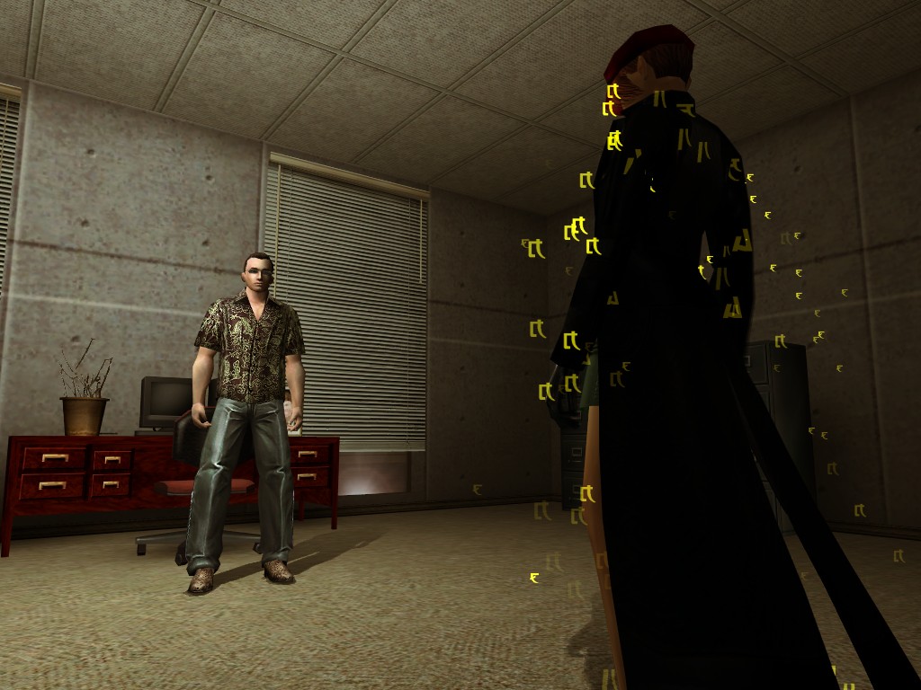 Observation and interrogation by myself and System operatives leads us to conclude that the simulacrum who has posed as the terrorist Morpheus does not constitute a threat to the simulation at this time. Operatives are instructed to continue monitoring the program. Efficiently, Agent Gray