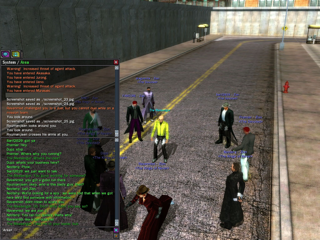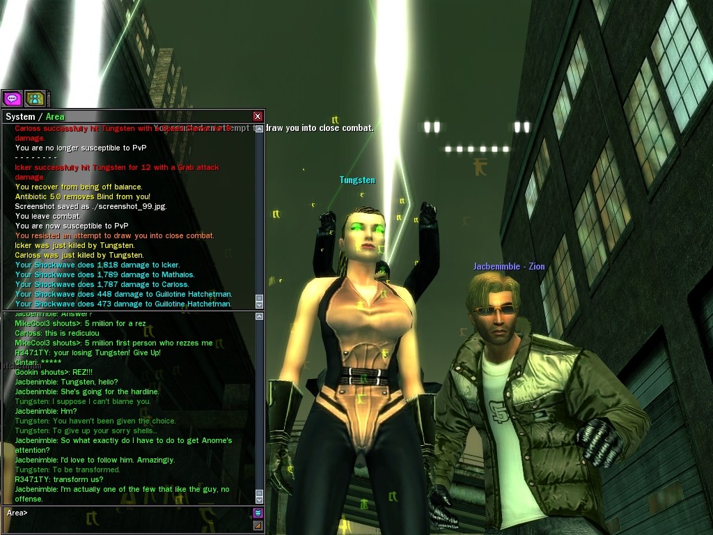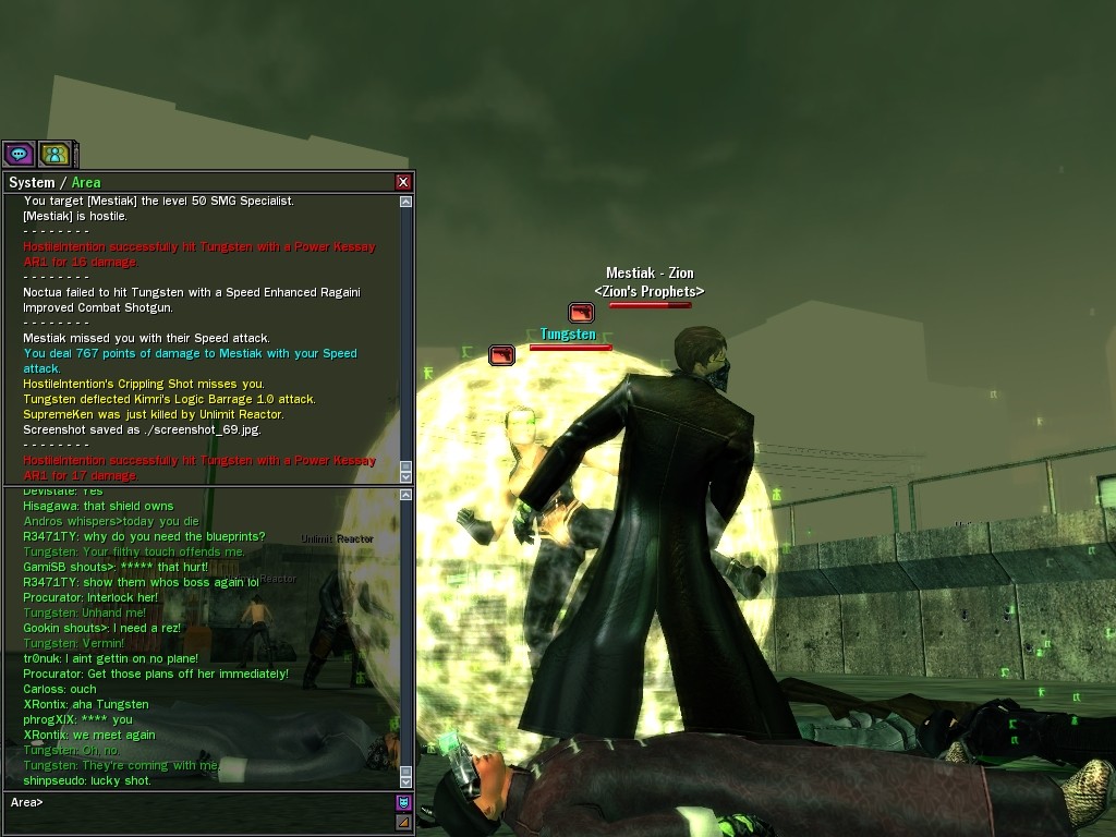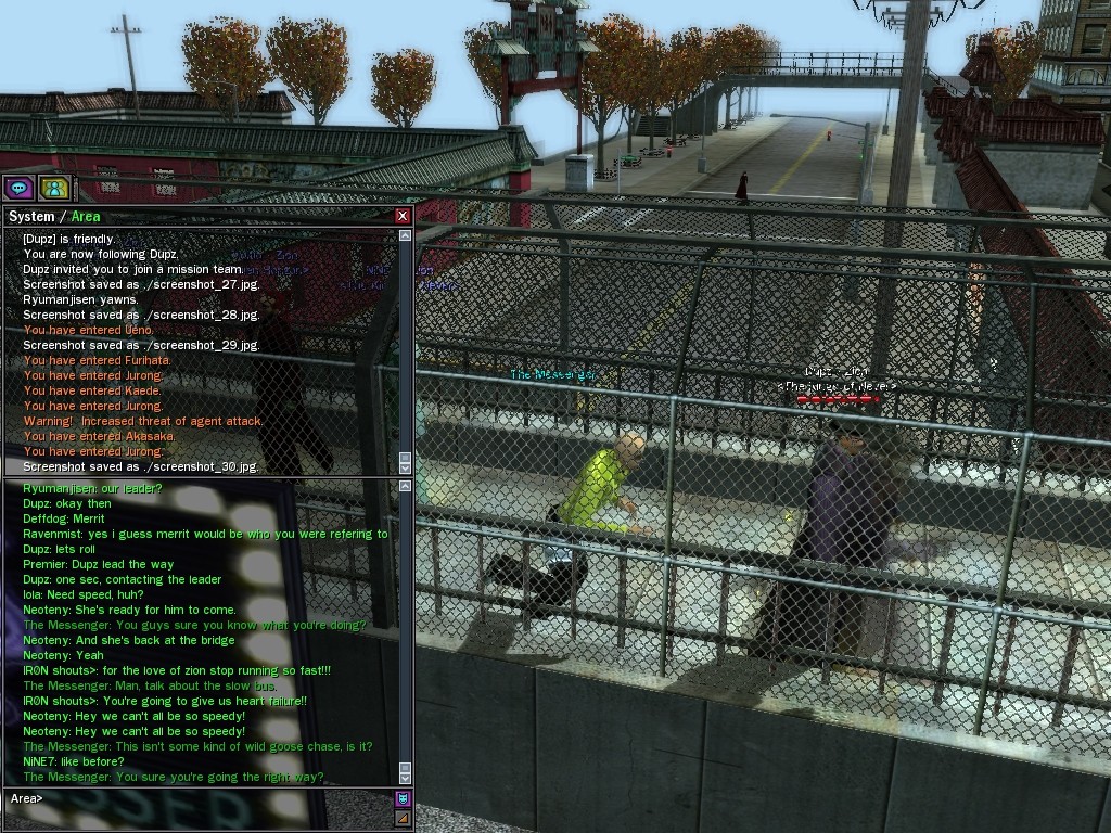 Operatives responded in large numbers to an outbreak of the Smith Virus in Downtown. Although the strain of the massive battle literally brought the simulation to a halt at one point, the operatives finally prevailed, with Ventio taking the shot that finally brought the virus down. Smaller manifestations of the virus throughout a large part of the district followed, but at this time we believe that operatives have the situation well in hand. Tyndall Mission Control Zion Command