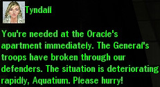 Aquatium I've sent out a urgent call myself, hopefully we're not too late. I don't want to even think what will happen if he kidnaps the Oracle. I got to her apartment...
