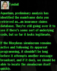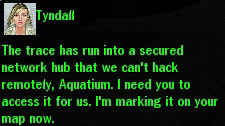 Aquatium I had the key and accessed the terminal. I got the intel and relayed it back to Tyndall.