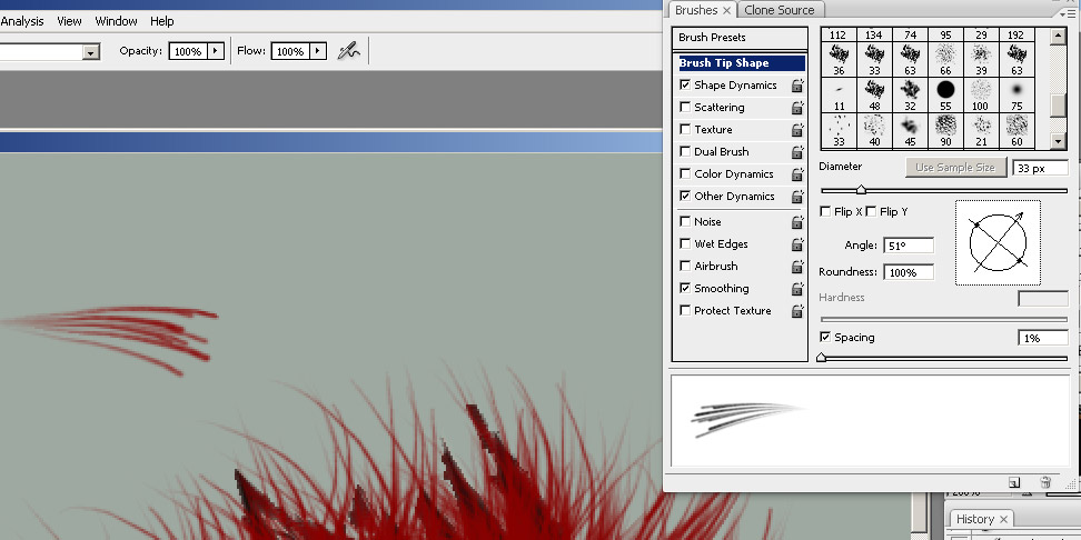 Step 4 Now I start to mark in the hair strands very quickly, and the fade will control the edges for me, I just need to pick the start point and drag the brush into the desired shape. Once you get your basic lines in place, make yourself a new brush. I make random dots on a new image, say a 50*50 box. Edit > Define Brush preset once you have that done, then follow the next part.