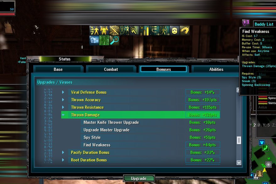 Upgrade Master buff overides "Martial Arts Prowness" and "Firearms Skill", both which are damage buffs for MA and Gunmen, however, you can apply the UGM buff and use find weakness at the same time, this needs to be fixed.