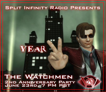 Welcome, one and all, to the second anniversary of The Watchmen. All are invited to join us in celebrating our second year of working with the System. The radio gods at SI Radio will be hosting the event and one can expect games, prizes, general merriment and possibly nekkedness. (Hey, it is an MxO party afterall) The party will be held on Saturday, June 23rd at 7PM PSTand will fittingly be located on the roof of the Machine HQ behind Tabor Park West. Hope to see you all there! www.mxowatchmen.com www.siradio.fm